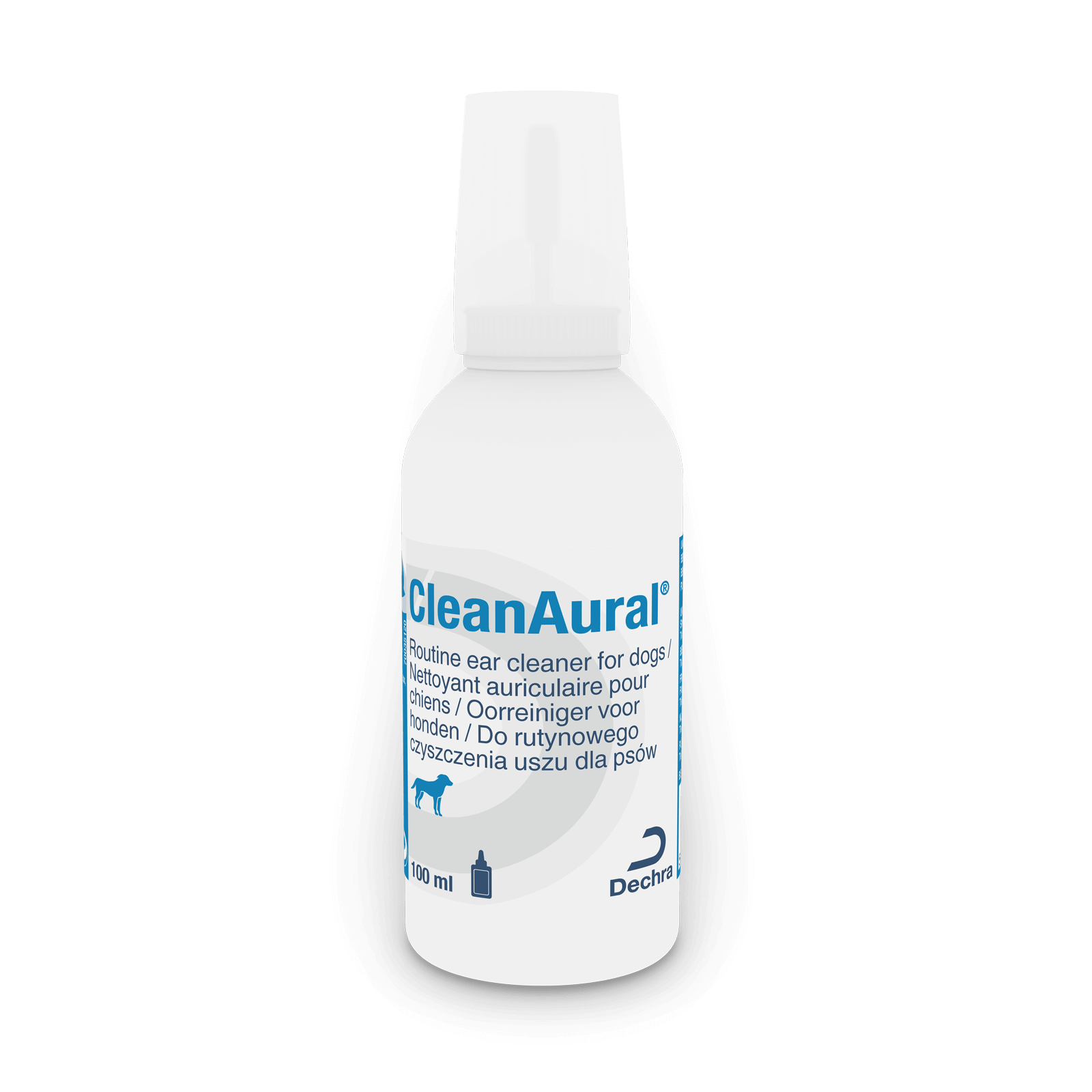 CleanAural Dog to płyn do rutynowej pielęgnacji uszu dla psów. Ma łagodne działanie rozpuszczające woskowinę, antyseptyczne i osuszające. Nie zawiera silnych keratolityków i substancji o silnym działaniu bójczym. pH jest neutralne dla środowiska psich uszu (6,3-6,9).