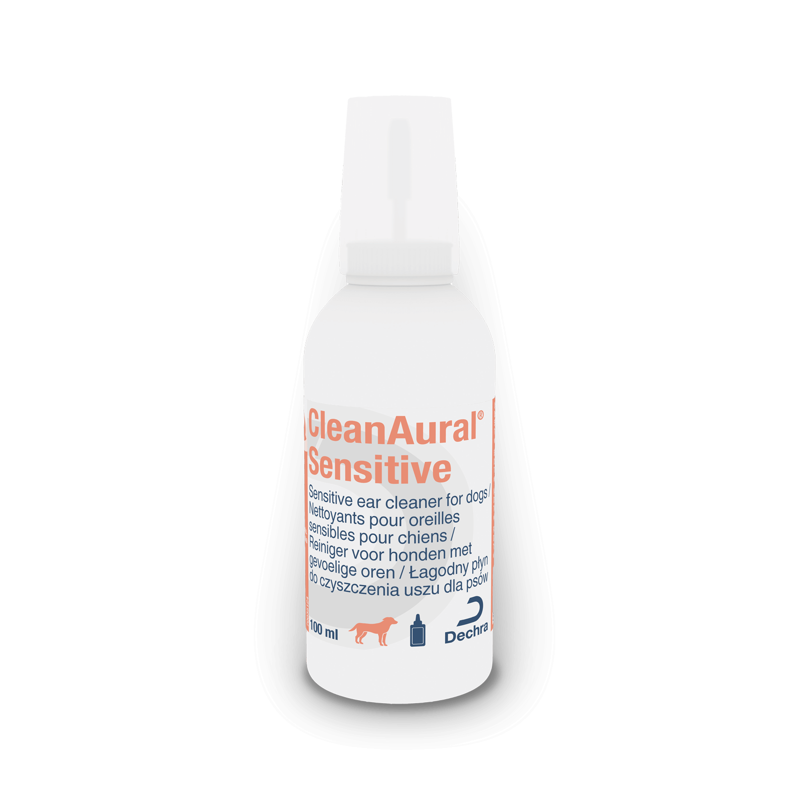 CleanAural Sensitive to płyn o łagodnym składzie do rutynowej pielęgnacji wrażliwych uszu dla psów.