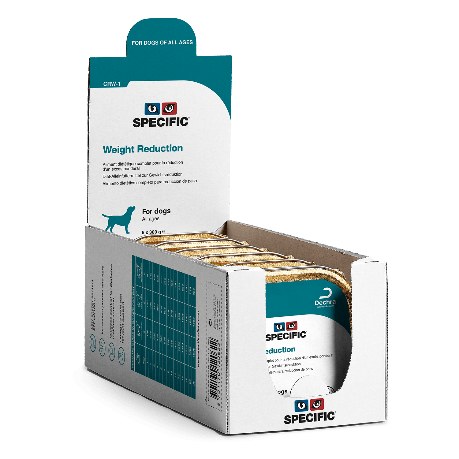 SPECIFIC™ Weight Reduction CRW to pełnoporcjowa i w pełni zbilansowana karma mokra dla psów dorosłych wszystkich ras. Może być stosowana jako podstawa diety bądź smaczny dodatek.