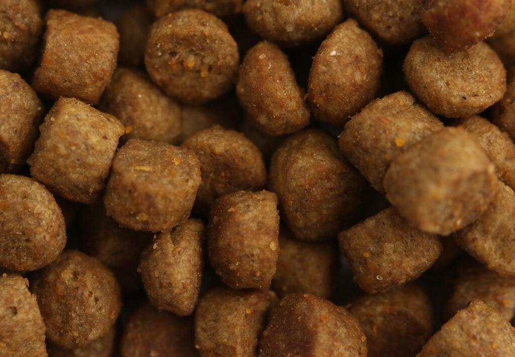 Mączka rybna, białko kukurydziane, kukurydza, pszenica, ryż, białko ziemniaczane, skrobia kukurydziana, sproszkowana celuloza, tłuszcz wieprzowy, hydrolizat białkowy pochodzenia zwierzęcego, witaminy i pierwiastki śladowe (w tym chelatowane pierwiastki śladowe), związki mineralne (w tym siarczan potasu), olej z ryb, łuski babki płesznik (psyllium), tauryna, pulpa buraczana, siarczan chondroityny, sproszkowana jukka.