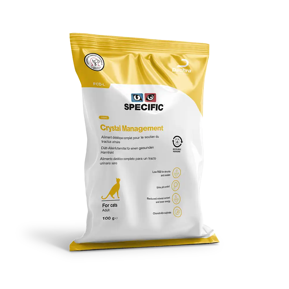 SPECIFIC™ Crystal Management Light FCD-L to pełnoporcjowa i w pełni zbilansowana karma sucha dla kotów powyżej 6 miesiąca życia z tendencją do nadwagi.