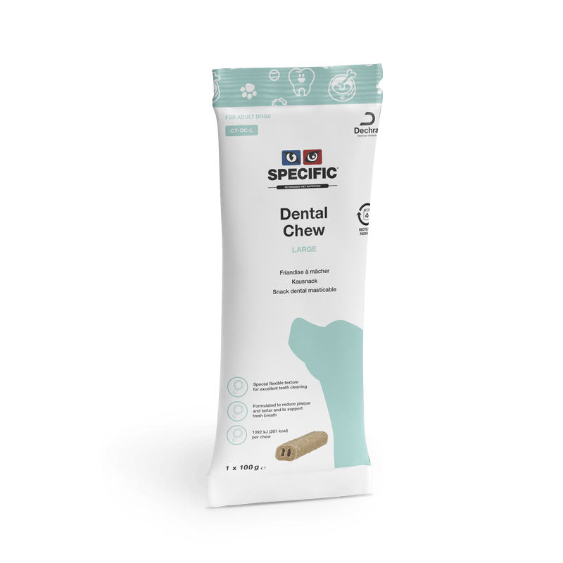 SPECIFIC™ Dental Chew Large CT-DC-L to stomatologiczne przysmaki dla psów dorosłych ras średnich i dużych, powyżej 15 kg masy ciała.