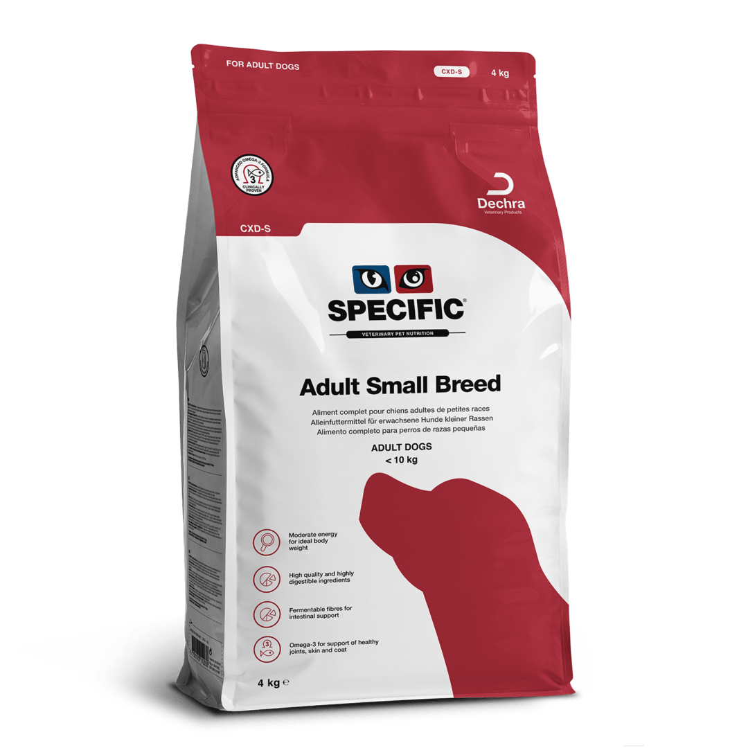SPECIFIC™ Adult Small Breed CXD-S to pełnoporcjowa i w pełni zbilansowana karma sucha dla psów dorosłych ras małych w wieku do 8 lat, poniżej 10 kg masy ciała.